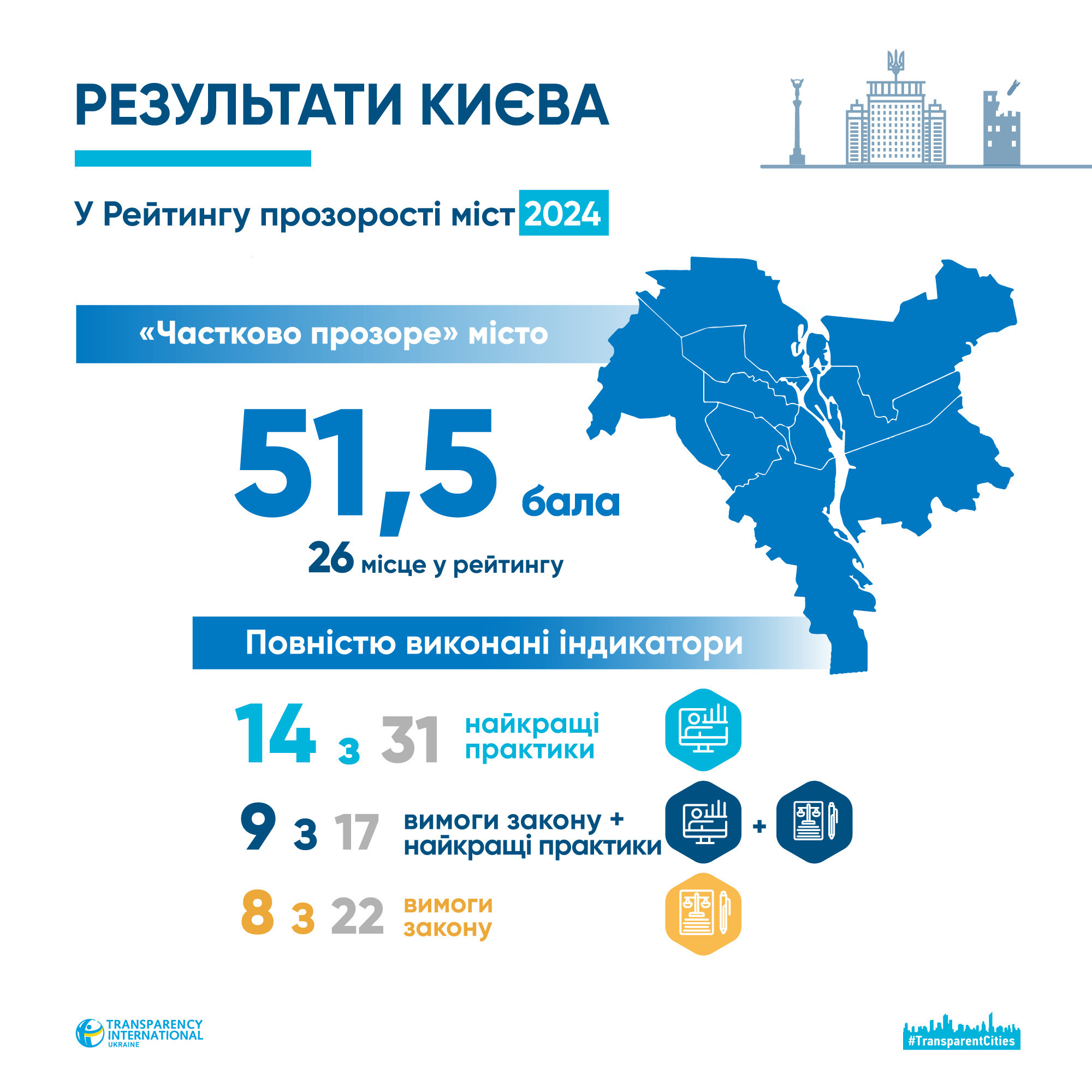 За підсумками проміжної оцінки, із 70 індикаторів прозорості, вивчених для Києва у 2024 році, станом на кінець літа 2025 року 26 залишаються невиконаними. Утім зафіксовано помітний прогрес за трьома напрямами: